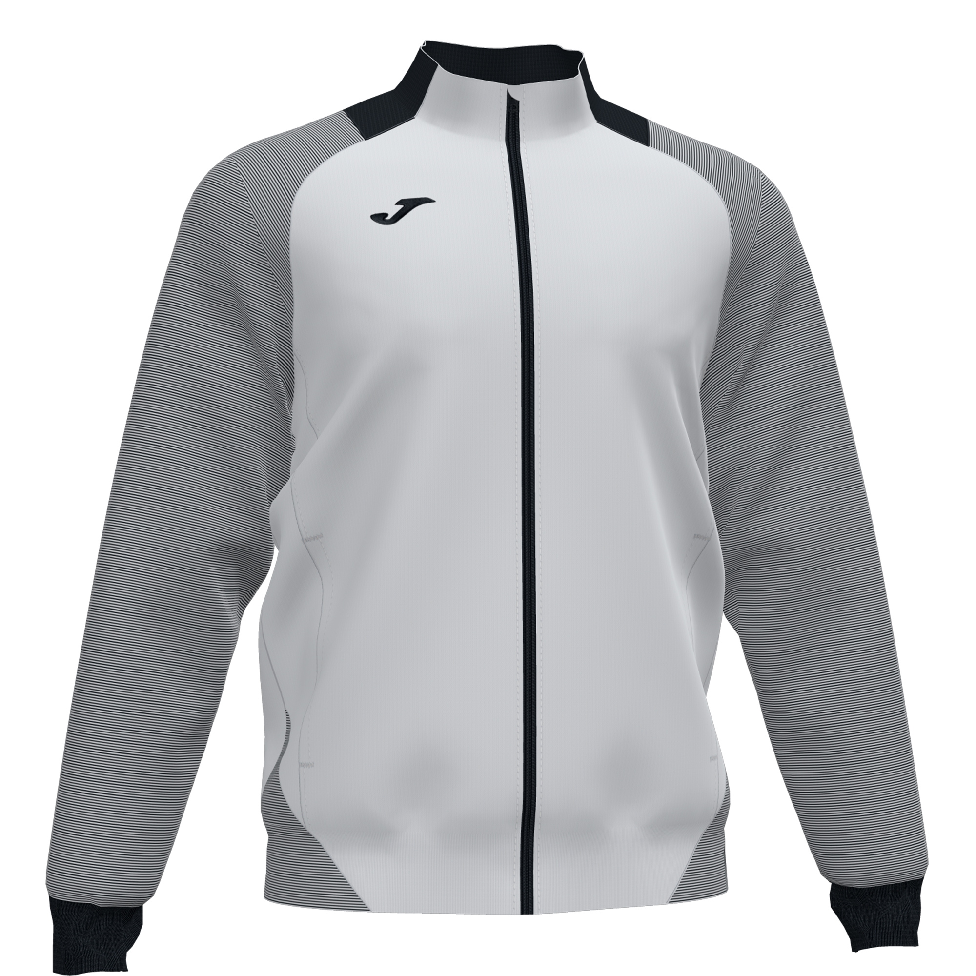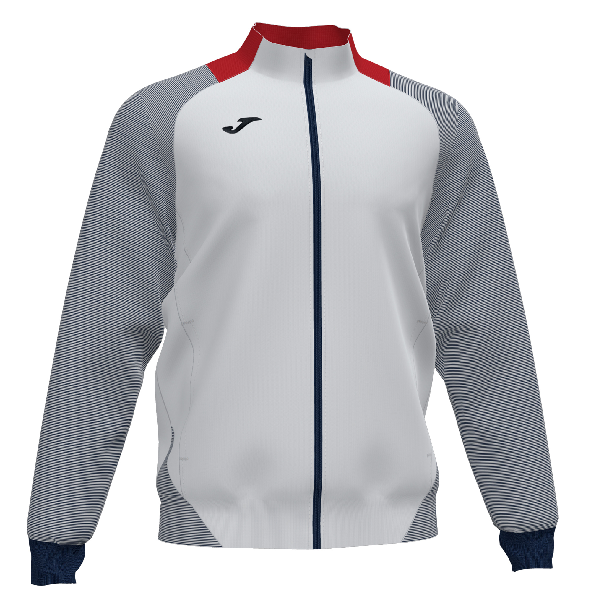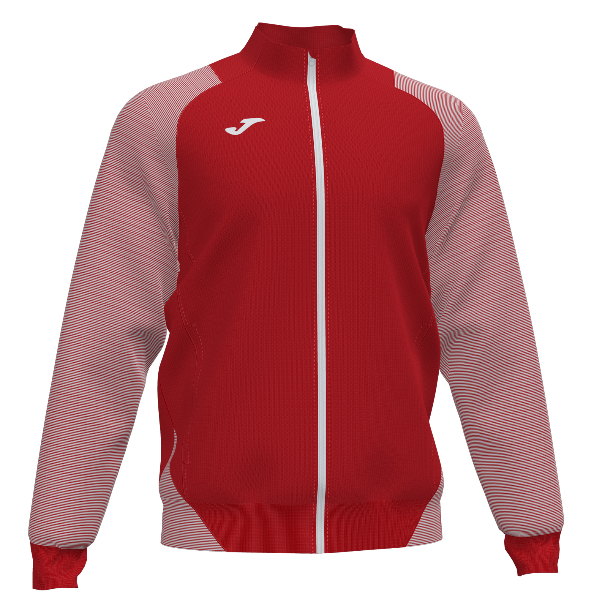 Zip-up sweatshirt. Ribbed hem and cuffs. Sublimation print stripes on the sleeves and body. Embroidered J logo.