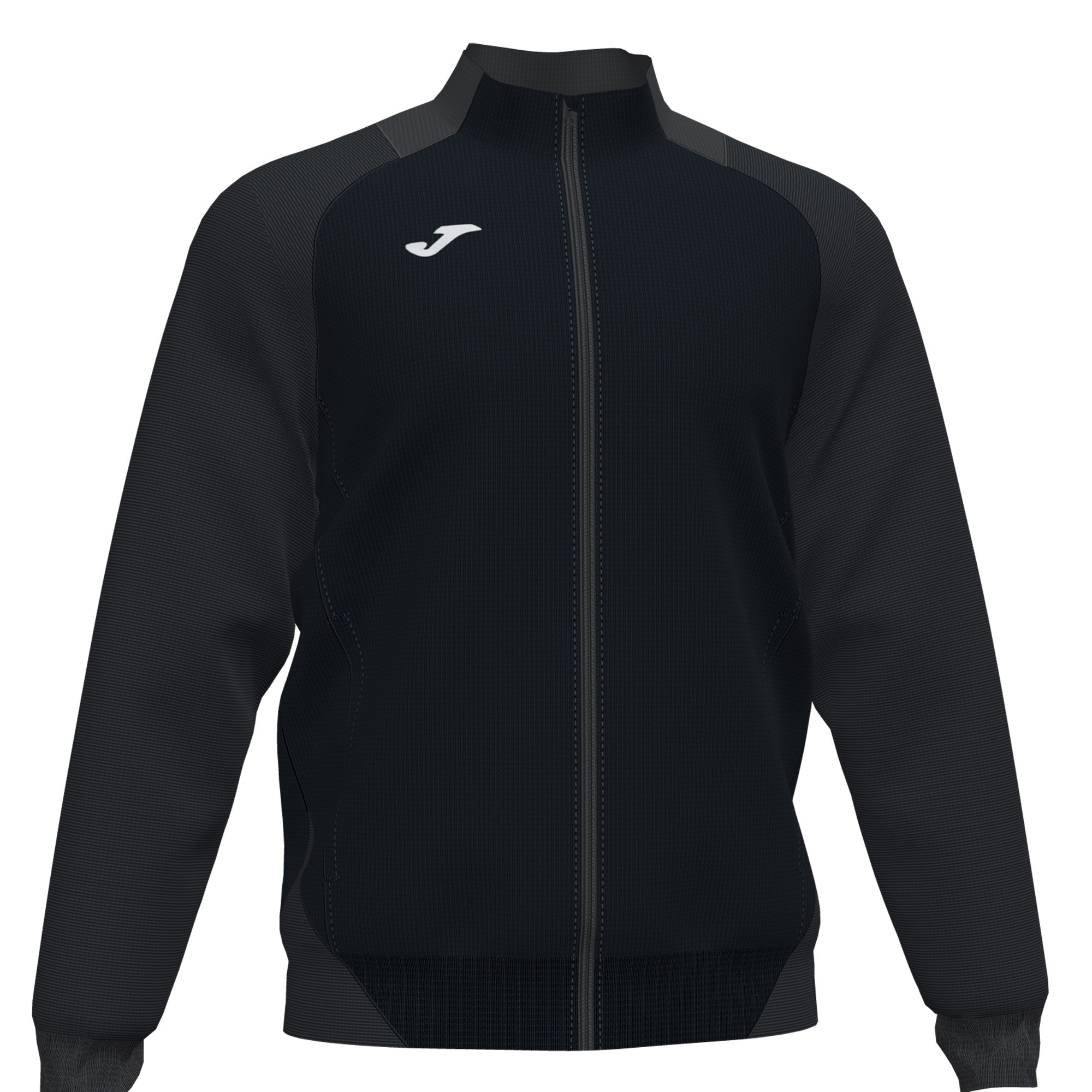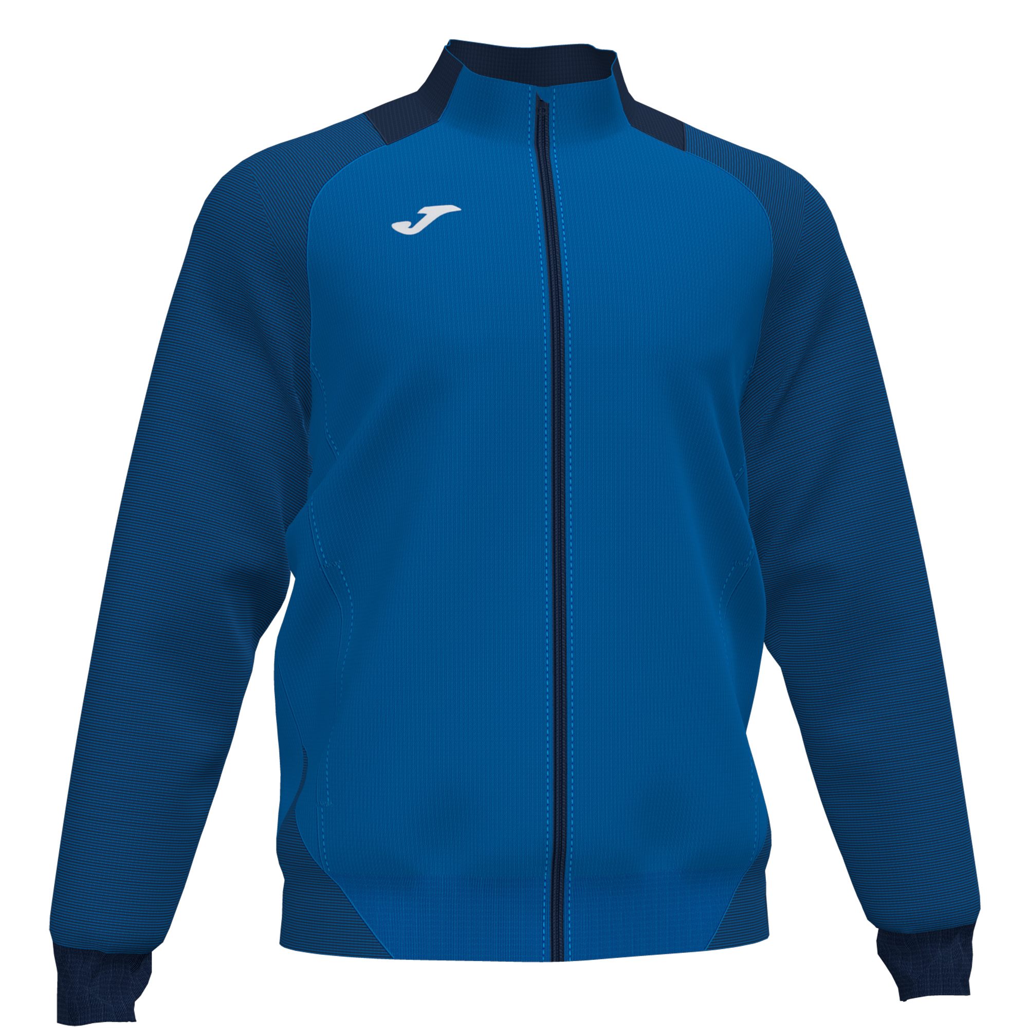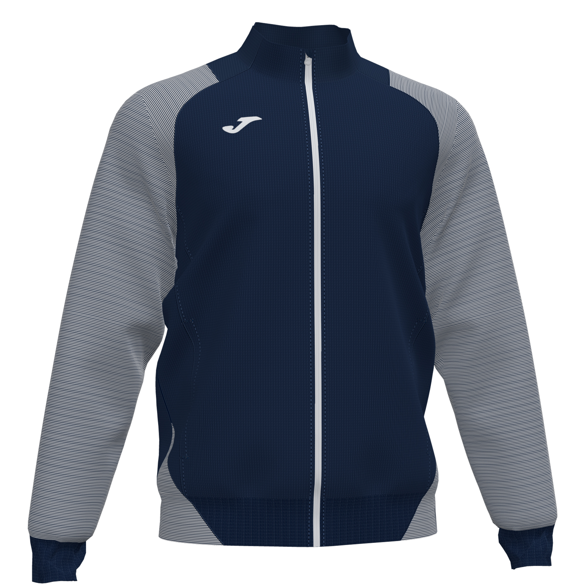 Zip-up sweatshirt. Ribbed hem and cuffs. Sublimation print stripes on the sleeves and body. Embroidered J logo.