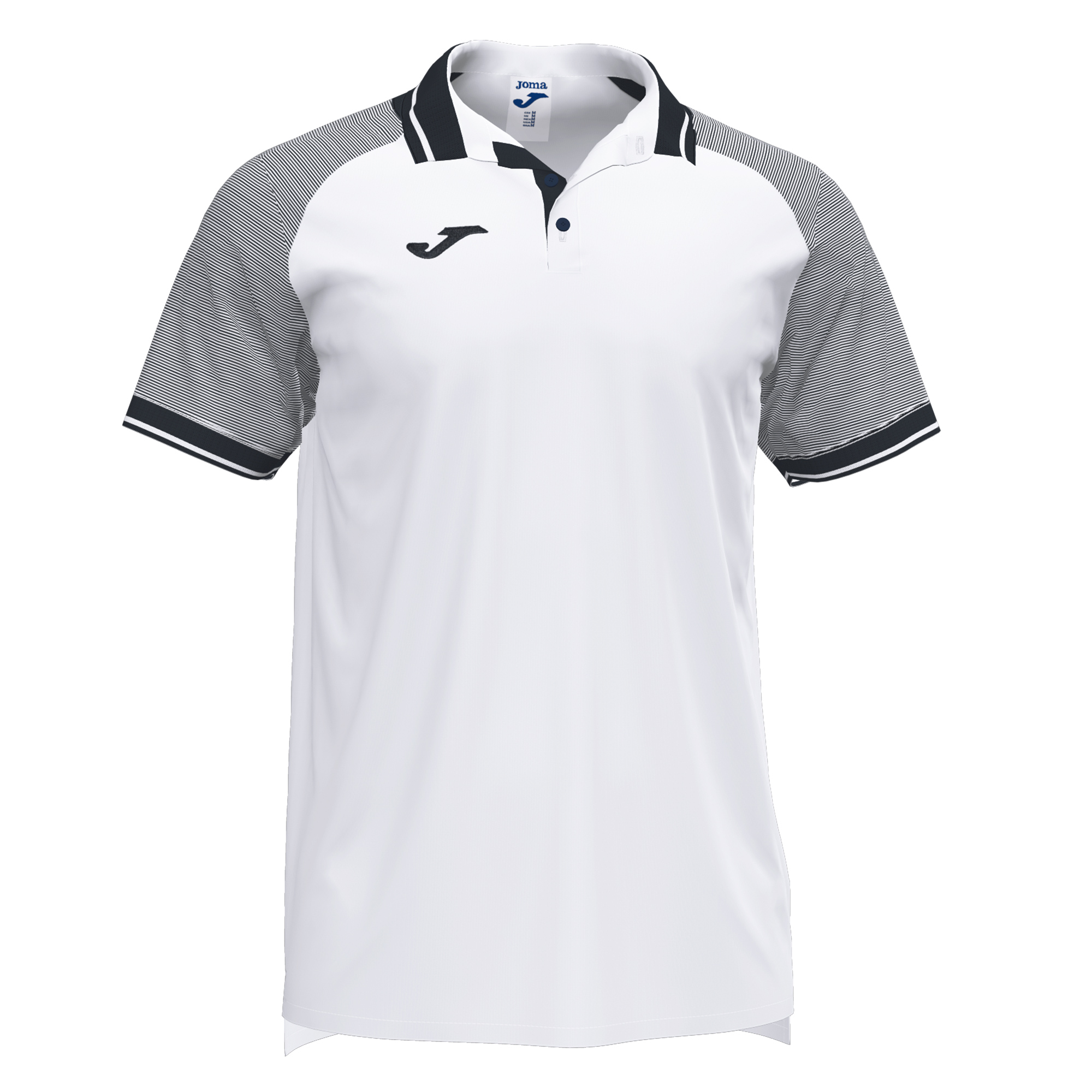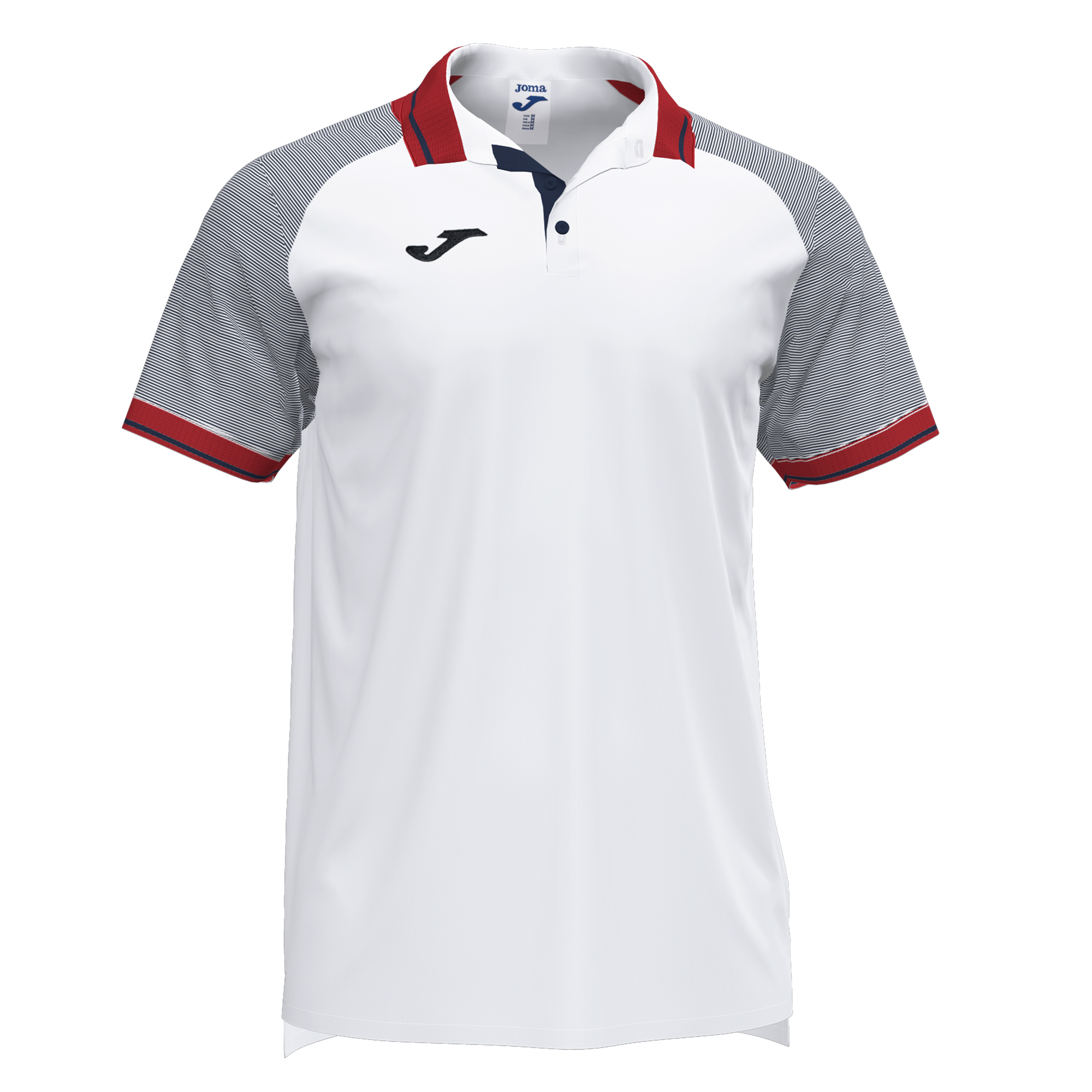 Polo shirt with ribbed collar and cuffs. Small side slits at the hem. Sublimation print striped sleeves. Embroidered J logo.