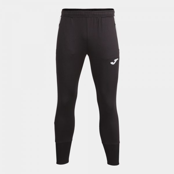 Long trousers with elastic waistband adjustable by means of drawstrings and side pockets with zip. The bottom is made of rib. Embroidered logo.