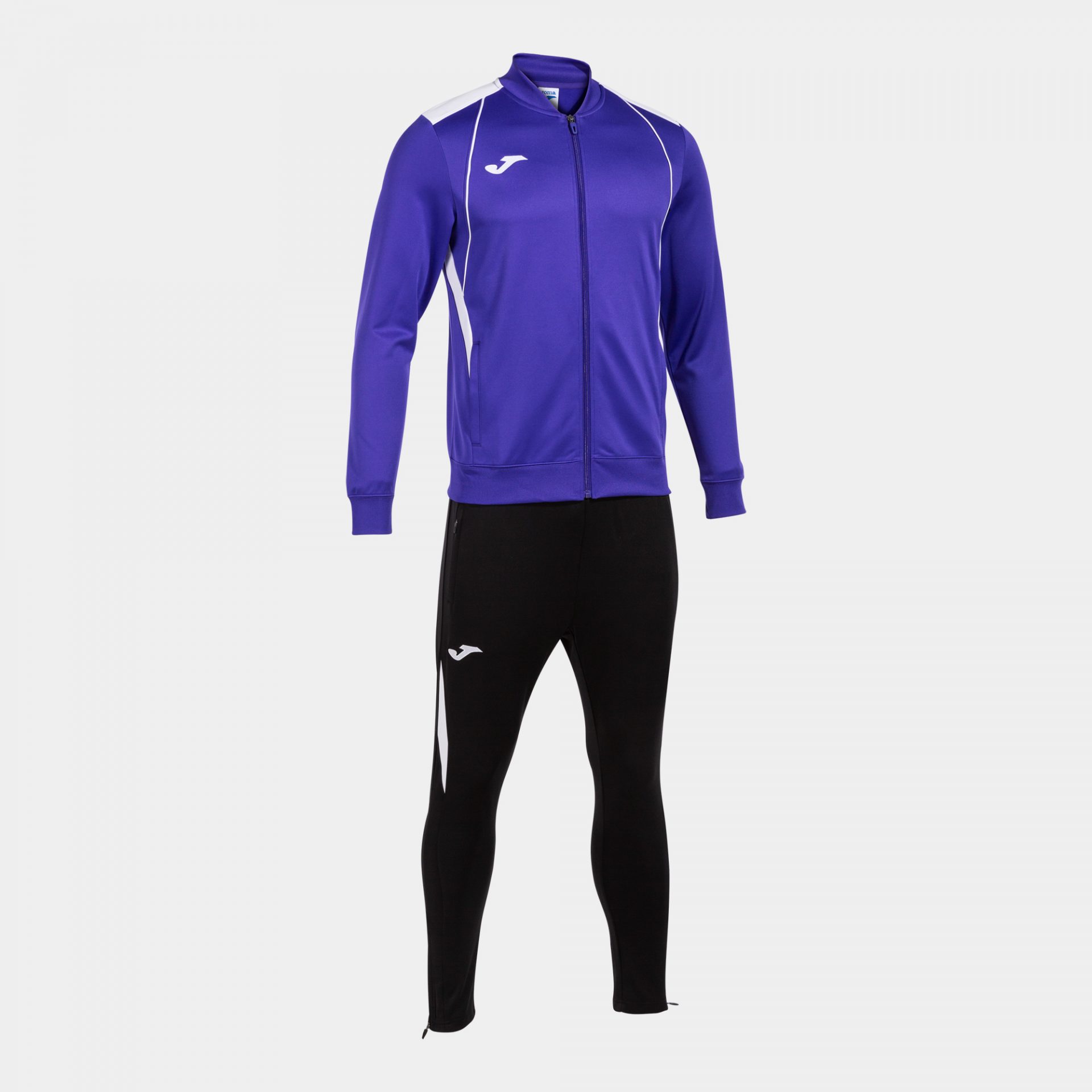Tracksuit consisting of zipped sweatshirt and tracksuit bottoms. Both items have an inner fleece lining and keep in the warmth, and can be adjusted to keep out the cold. It has various pockets. Embroidered J logo.