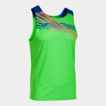 Sleeveless, round neck t-shirt. Includes a sublimated design on the front. Screen-printed logo.