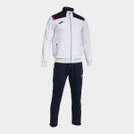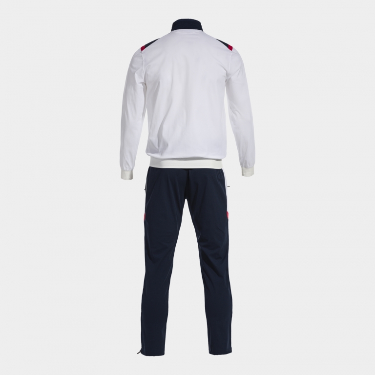 Sweatshirt composed of a zip-up sweatshirt and long pants. The sweatshirt includes elastic at the neck, cuffs, and waist. The pants have an elastic waistband with a drawstring and a zipper at the bottom. Secure pockets in both garments. Embroidered J logo.