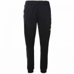 Waist elastic with inner drawcord, side pockets with zip and bottom border in rib. Omini banda on sides printed.