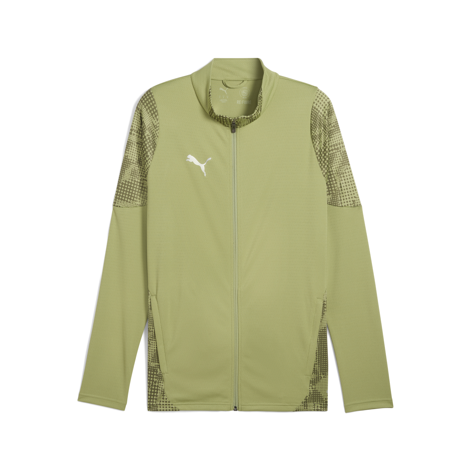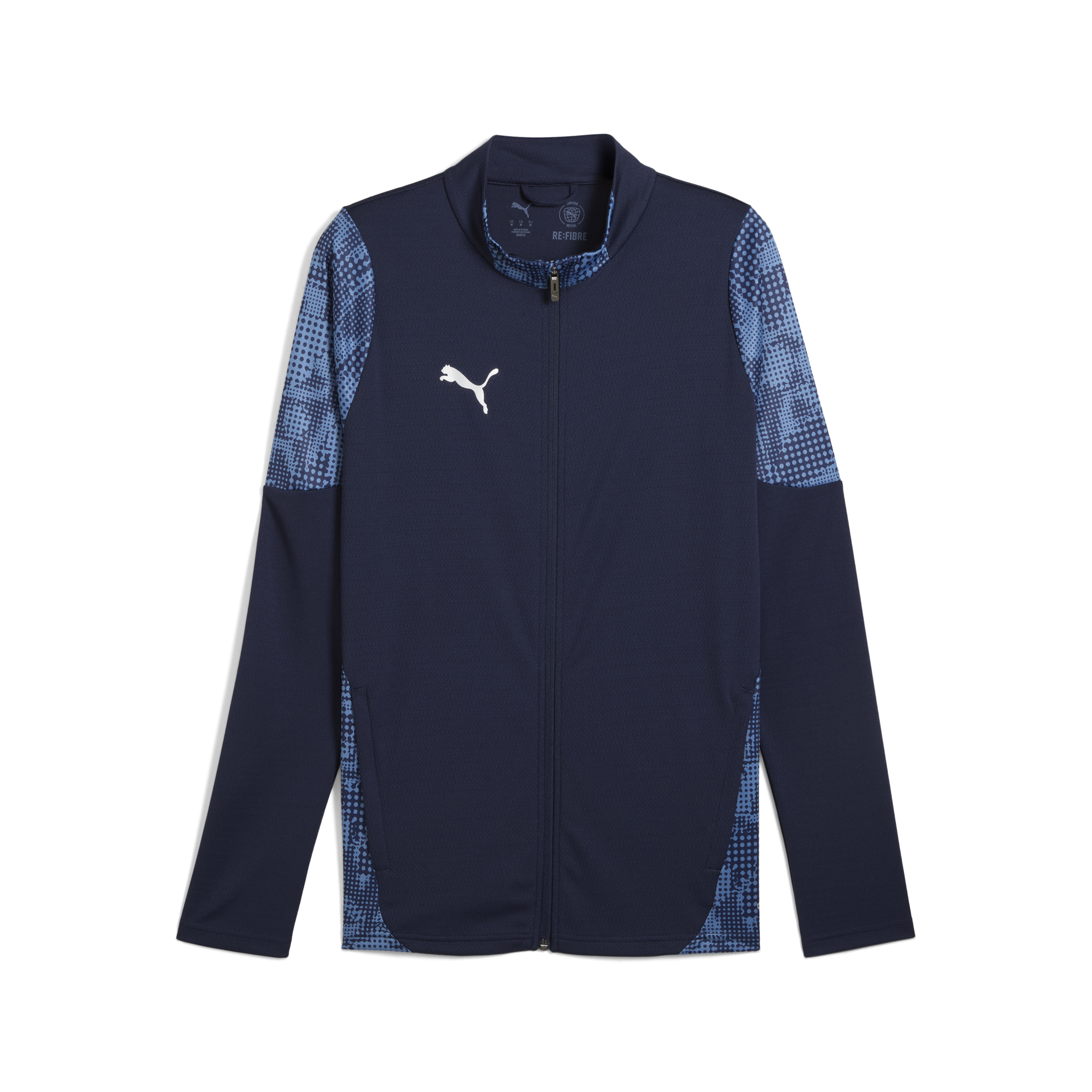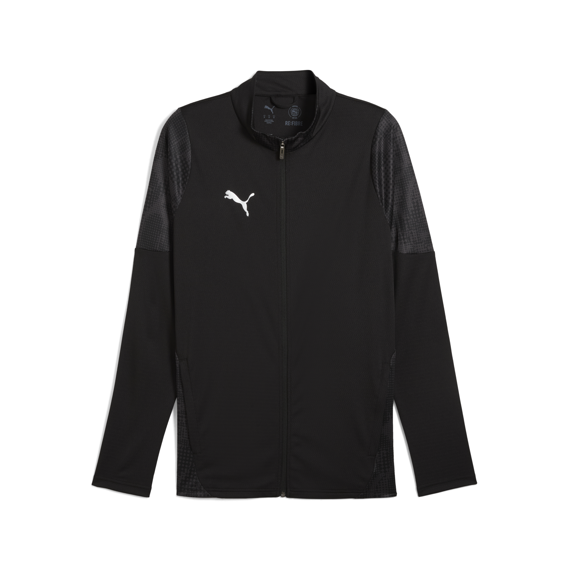 Silver Puma cat on right chest; Full zip; Print on shoulders