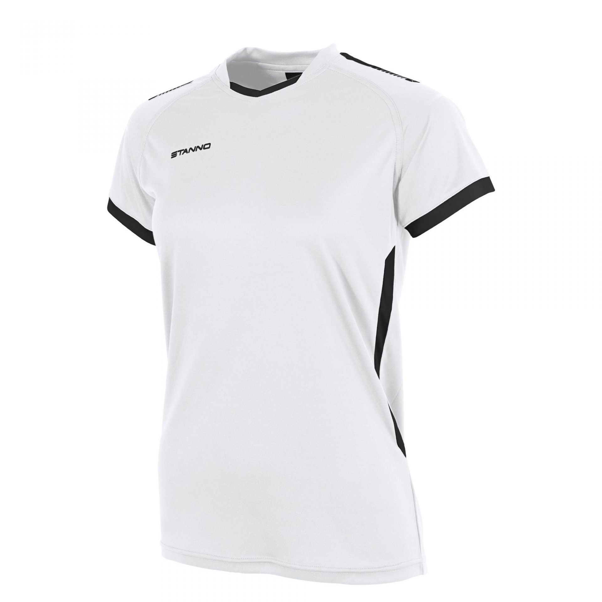 This ladies shirt with V-neck from Stanno is made of 100% recycled polyester. The shirt is quick-drying and has a ClimaTec finish that ensures optimal sweat-wicking. The shirt feels soft, and the raglan sleeve insert provides sufficient freedom of movement. The shirt is fully double-stitched for extra strength at the seams because, of course, this shirt has to take a beating on the field. The printed logos make this shirt a stylish addition to your sports wardrobe. The shirt is suitable as a competition shirt, for presentation and also as a training shirt.